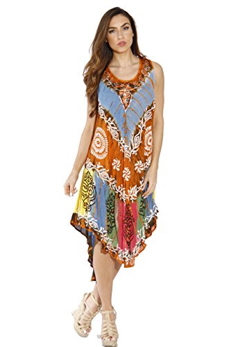 -. Binding : Apparel -. Brand : Riviera Sun -. Department : womens -. Feature : FUN IN THE SUN - These Dresses are great for lounging or a day at the beach / BEAUTIFUL EMBROIDERY - Each dress has eye-catching embroidery that will make a statement / TIE DYE - This dress has been hand tie dyed making each dress one of a kind / EASY FIT - This dress offers a comfortable flowy fit for all body types / EASY CARE - This casual sundress is machine washable -. ProductGroup : Apparel -. ProductTypeName : DRESS -. Title : Riviera Sun Summer Dresses / Swimsuit Cover Up