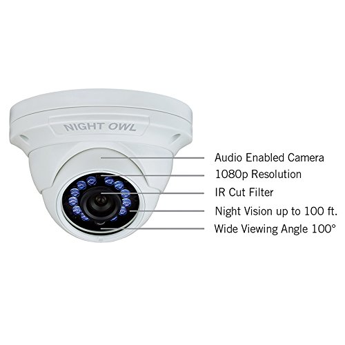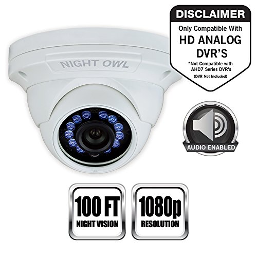 -. Binding : Electronics -. Brand : Night Owl -. Color : White -. EAN : 0810830023311 -. Feature : Want to expand and add cameras to your Night Owl Security DVR System. Purchase this 1080p HD Wired Security Cameras and view your video in 1080p HD / The HD Analog 1080p wired camera is equipped for facial recognition and night vision ranging up to 100 ft. with an auto IR cut filter sensor that produces a clear and crisp image day or night. / Night Owl HD Analog 1080p wired camera comes equipped with a 3-axis vandal-proof mounting bracket / Compatible with all Night Owl HD Analog Series DVRs (NOTE: Not compatible with AHD7 Series) / At Night Owl, our goal is to provide an incomparable experience for any technical support required. -. Label : Night Owl -. Manufacturer : Night Owl -. Model : CAM-HDA10W-DMA -. MPN : CAM-HDA10W-DMA -. PackageQuantity : 1 -. PartNumber : CAM-HDA10W-DMA -. ProductGroup : Photography -. ProductTypeName : SURVEILANCE_SYSTEMS -. Publisher : Night Owl -. Studio : Night Owl -. Title : Night Owl Security, 1 Pack Add-On 1080p HD Wired Security Dome Camera - Audio Enabled (white) -. UPC : 810830023311