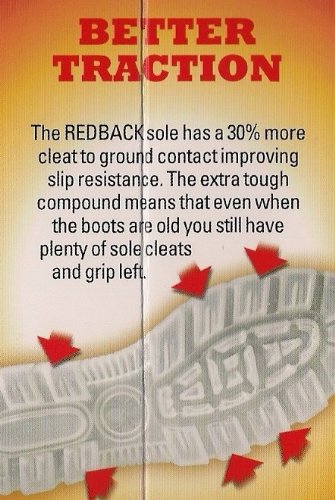 Redback boots are made by the traditionally preferred cement lasted method whereby the leather is wrapped under the insole and fused under heat and pressure with high tech Polyester and Polamide molten sealant/adhesive. The Anatomic sole profile is designed to reduce arch flexion (sagging), subsequent foot fatigue and referred leg and back ache.