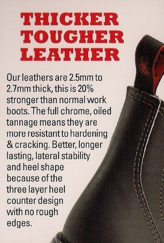 This Aussie made work boot constructed from 2.5 to 2.7mm thick leather is 20% stronger than normal work boots and well over minimum international standard.