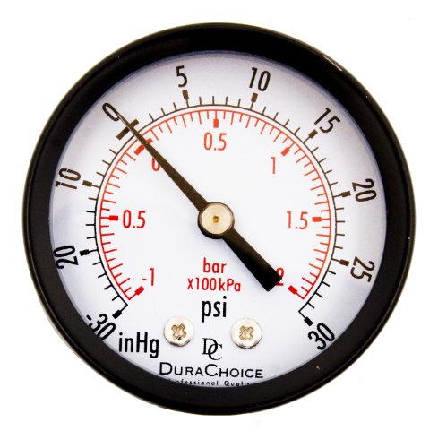 DuraChoice 2" Dial Utility Vacuum Pressure Gauge for Air Compressor Water Oil Gas, 1/4" NPT Center Back Mount, Black Steel Case, -30HG/30PSI