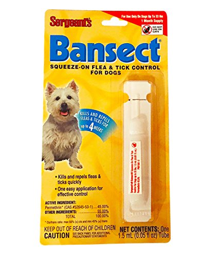 Product Description Bansect Squeeze On Flea And Tick Control For Dogs! Kills And Repels Fleas For Up To Four Weeks! One For Dogs Under 33 Pounds And One For Dogs Over 33 Pounds! One Easy Application For Effective Control! One Treatment Per Package! 0
