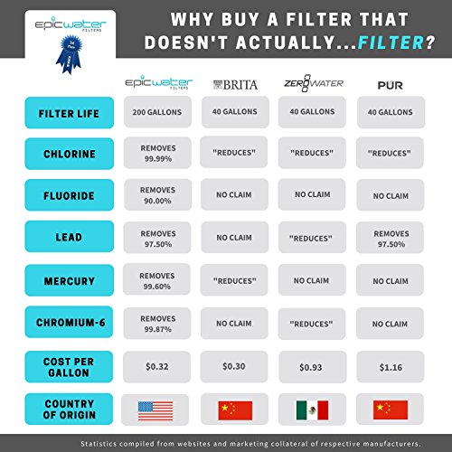 ★ RIGOROUS TESTING: Filters tested extensively in USA including Los Angeles County, as well as heavily contaminated homes in Flint, Michigan. Independent lab results show our filters to have removed lead, copper, and many other metals and toxins to undetectable levels in Flint. (Now that's Epic). Testing also conducted by independent labs in 16 countries inc: UK, Japan, Australia, Brazil, New Zealand. Filters are certified to NSF/ANSI Standards 42, 53, and 401 for contaminant reduction.