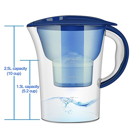 Large Capacity and High Efficiency Filtration: Total capacity: 2.5 Liters (10 cup); Filtered capacity: 1~1.3 Liters (4~5.2 cup). Flow control with natural micro pore powerful protective filter ensures the perfect filtration time for best Results. Only takes about 3~5 minutes to filtrate the maximal filtered capacity of water for one time
