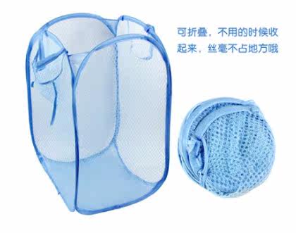 超实用大号彩网脏衣篮透气性折叠式收纳篮储物篮