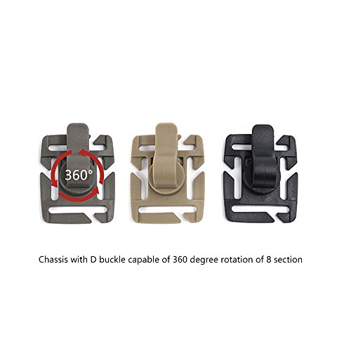 -. Feature : It can be used with 18mm and 25mm webbing strap. / Adjusts to 8 different fixed positions, the clip can rotate 360°, use with MOLLE Ribbon. / The slotted outside bars allow you to simply add base unit to any position along the shoulder strap. / For Tube Diameter: About 0.3 ~ 0.5 inch / 8 ~ 12 mm. / Overall Size (L x W): Approx. 1.6 x 1.3 inch / 4 x 3.3 cm.