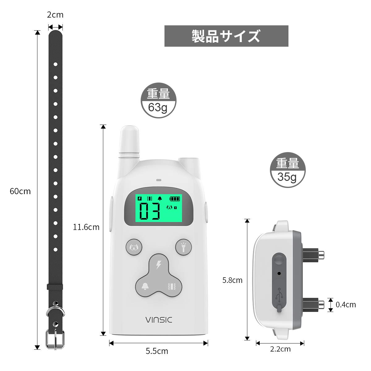 「遠隔操作&適用対象」リモートコントロール距離は300メートル(障害物や干渉なし)。耐久性と調節可能な首周り(長さ60cm)。適用範囲が広い:小型犬、中型犬、大型犬、全犬種対応です。愛犬が妊娠中・生後6か月以内・老犬(8歳以上)・手術後・病気・健康状態が悪い場合は、使用しないでください。
