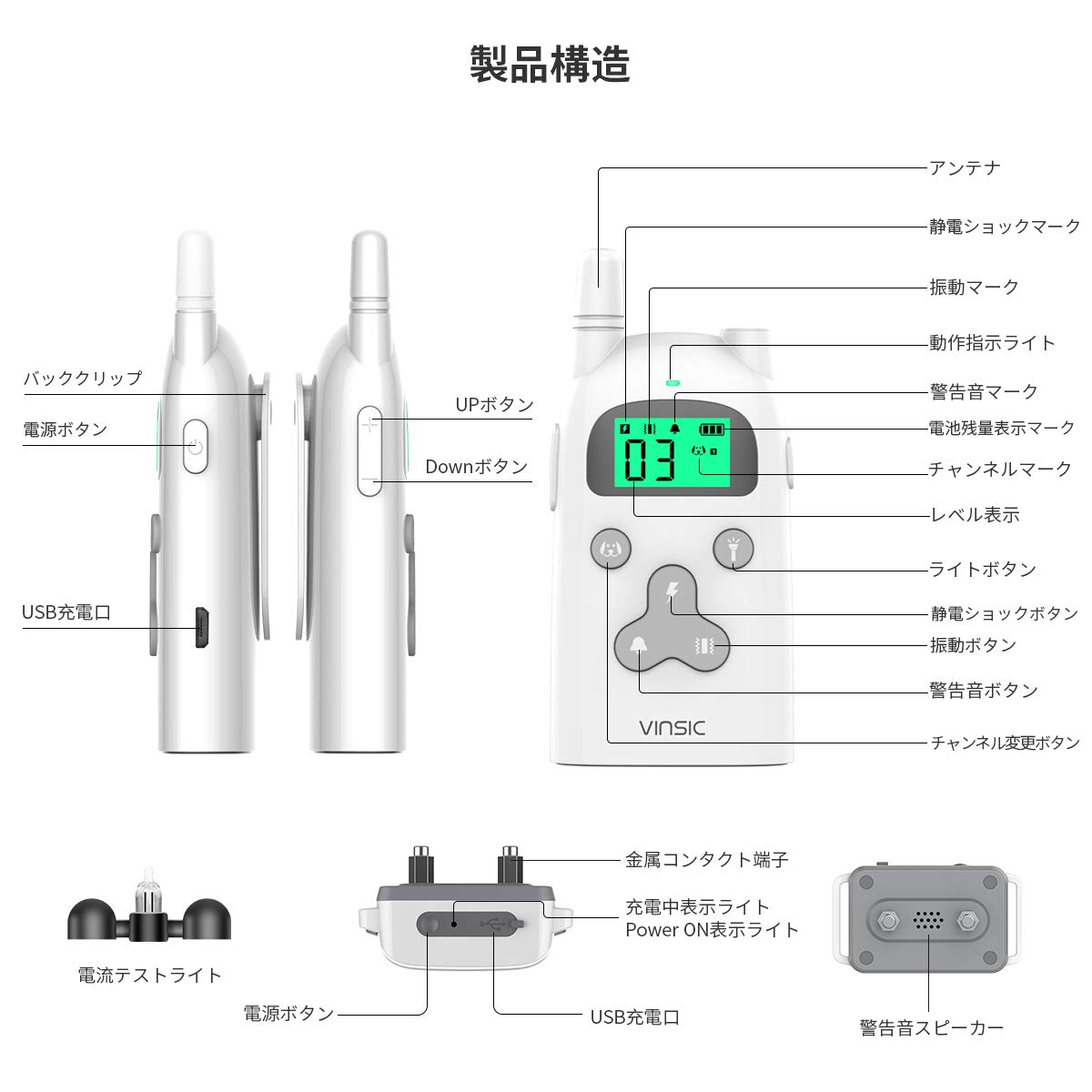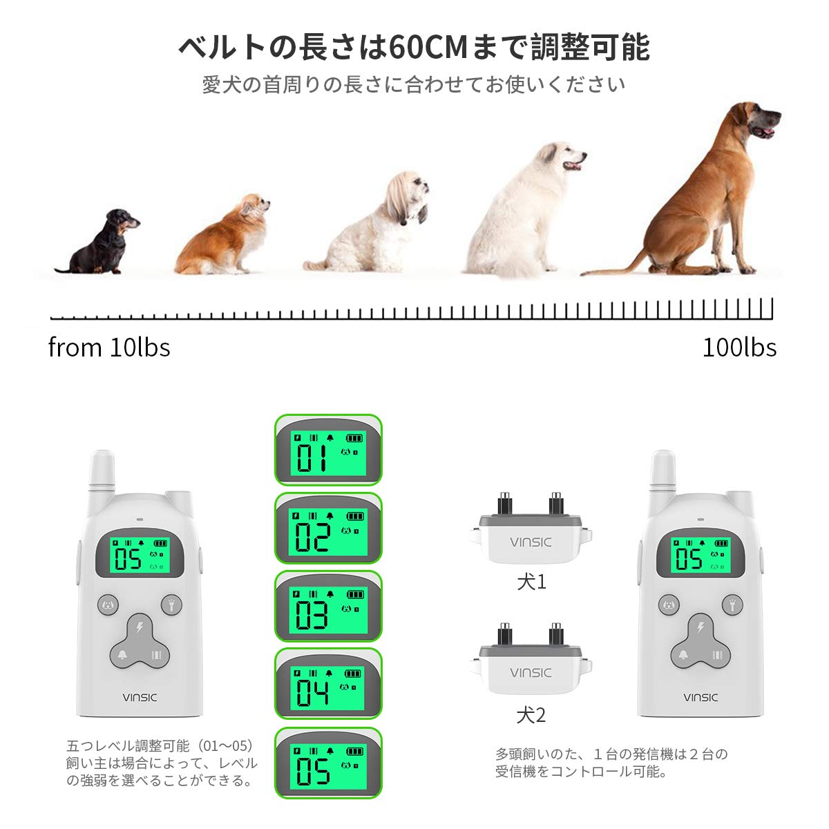 「五つレベル調整」バイブレーション・静電ショック・警告音はすべて5レベル調整可能、無駄吠えを止め、愛犬の訓練を高効率、精確にできます。