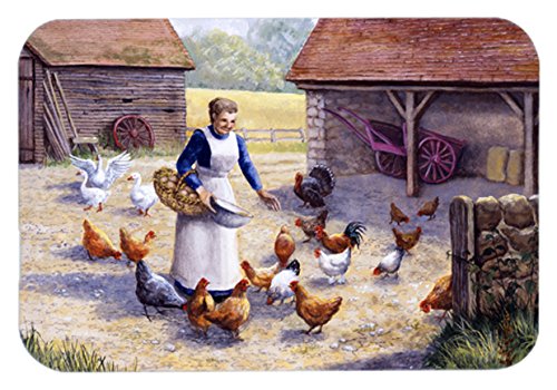 Caroline's Treasures BDBA0352LCB "Chicken Hen Feeding Time" Glass Cutting Board, Large, Multicolor