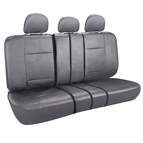 - Feature : Includes 2 front seat covers with 2 headrest covers & 1 rear bench with 3 headrest covers / Fits most cars, trucks, SUV's and vans. Fits over 50/50, 60/40, and 40/20/40 split rear seats. / Airbag compatible. Wipe clean using mild detergent and water. / Easy to install, no professional experience required. Instructions included. / Constructed from durable simulated leather with 3mm foam backing.