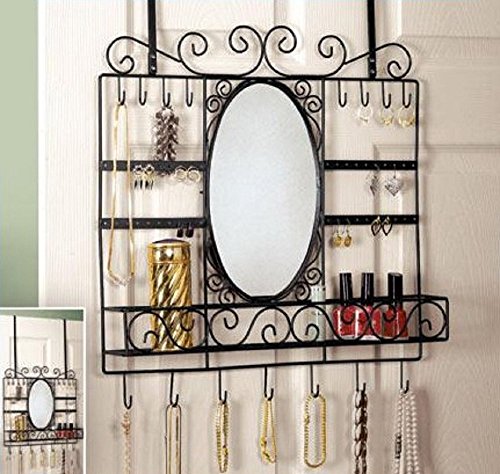 - Holds 18 pairs of earrings, along with over a dozen hooks and a shelf to keep necklaces, bracelets, chains and other items in full view and tangle-free