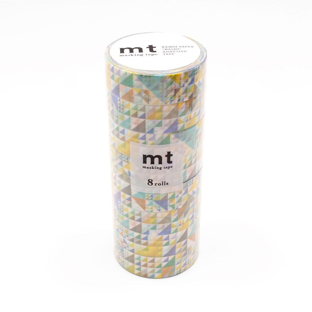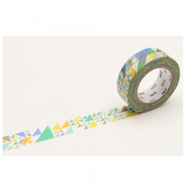 大小さまざまな三角で作られたパターン柄のマスキングテープです。