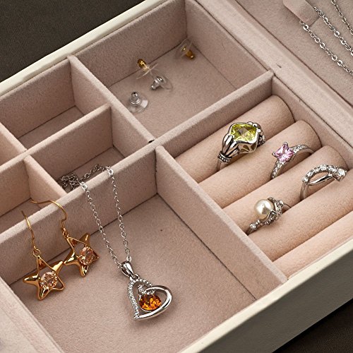 CharmsStory Butterfly White Leather Jewelry Box Display Storage Case Organizer For Women Girls (White)