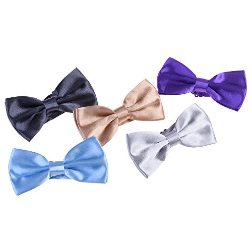 BCP Pack of 5 Solid Color Adjustable 5" Pre-tied bow ties bowtie Men accessories Wedding Parties