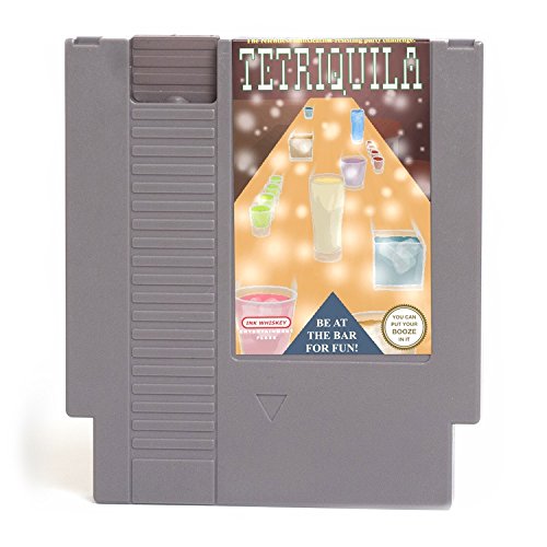 - Video game cartridge shaped flask with parody label. Holds about 4.25 oz. of your favorite libation.