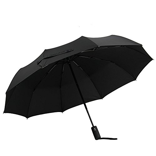 Batar Windproof Umbrella Automatic Open Close / 10 Fibreglass Ribs Travel / Sunshade Umbrellas / Stylish Black Design Portable and Lightweight / Travel Umbrella for Men Women / Black