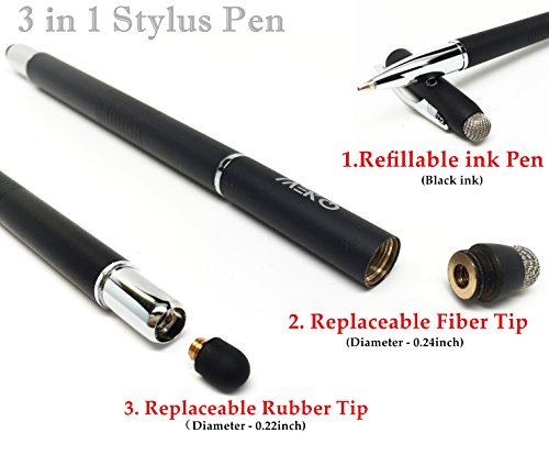 Unique, 3-in-1 design - (Micro-fiber Tip + Rubber Tip + Fine Ball Pen) ;Dual-sided Stylus Tips are perfect for scrolling and surfing the web, while the other side features an Integrated Ink Pen (with highest-quality ink) - perfect for taking paper notes,Conveniently designed in pen form, perfect for carrying around
