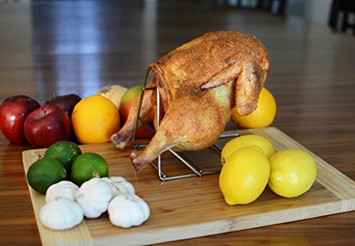 The Lemon Chicken Roasting Rack was designed to cook healthy chicken in your own oven. The rack holds the chicken up allowing grease to fall into the tray.This will lower the consumption of fat for you and your family when cooking a chicken with the rack. The heat from the oven will cook the chicken on all sides which leaves a crispy skin all the way around the chicken. You can also place a lemon, or any other desired fruit or vegetable, in the middle of the chicken on the designated spear, allowing you to experiment with different flavors. Maher Customs Seasonings were designed to be the healthiest seasonings on the market. They use sea salt and no artificial ingredients. They also do not contain any preservatives, no MSG and are free of gluten. We are confident you will love cooking chicken this way and that's why we offer a 100% money back guarantee on our products.Feature