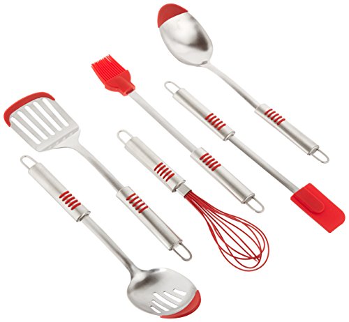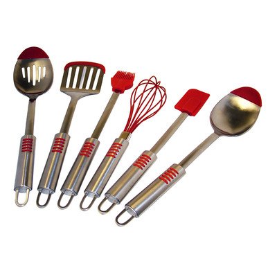 Studio : LCM Home Fashions, Inc. Publisher : LCM Home Fashions, Inc. Binding : Kitchen Product Description This Kitchen Elements deluxe set of six utensils furnishes a kitchen with the durable essentials. All of the tools in this set are made of attractive and sturdy stainless steel with red silicone tips on the tools to protect nonstick pans and cookware. 0