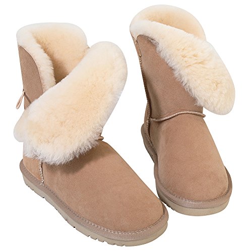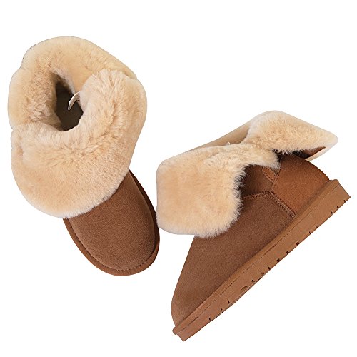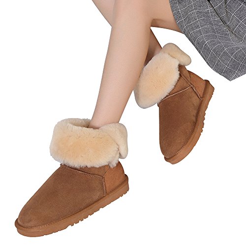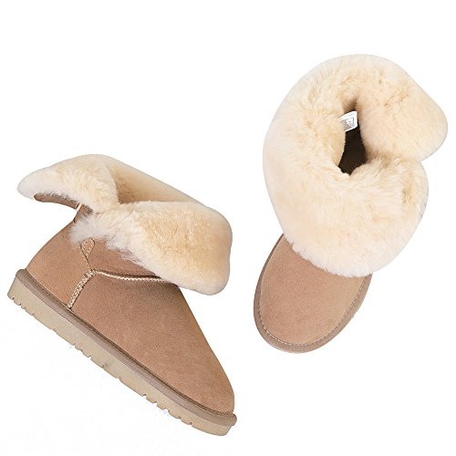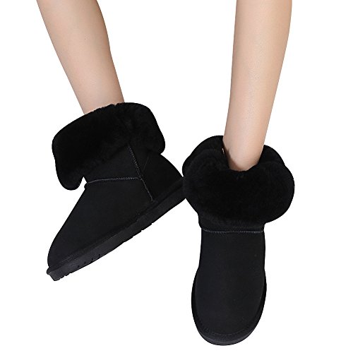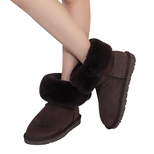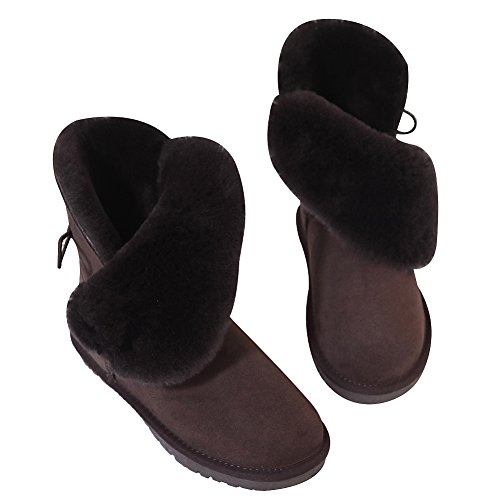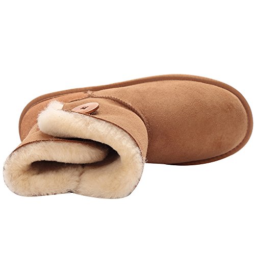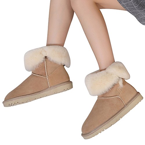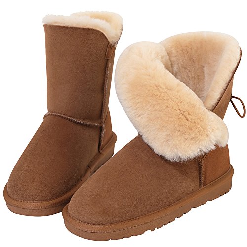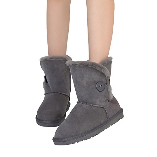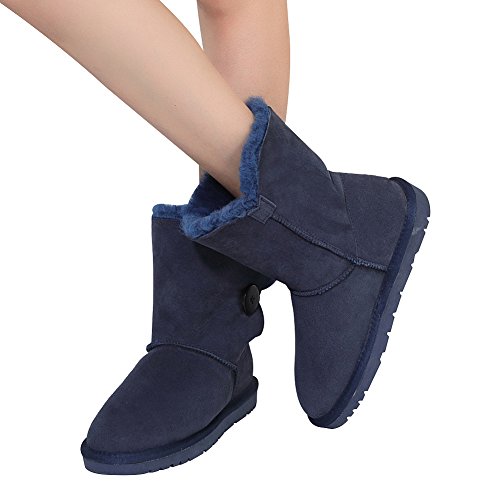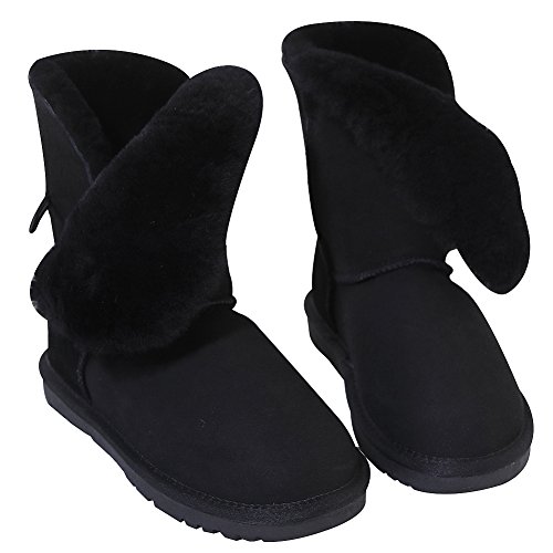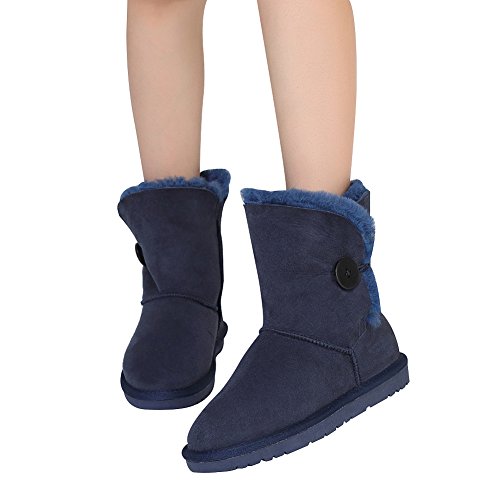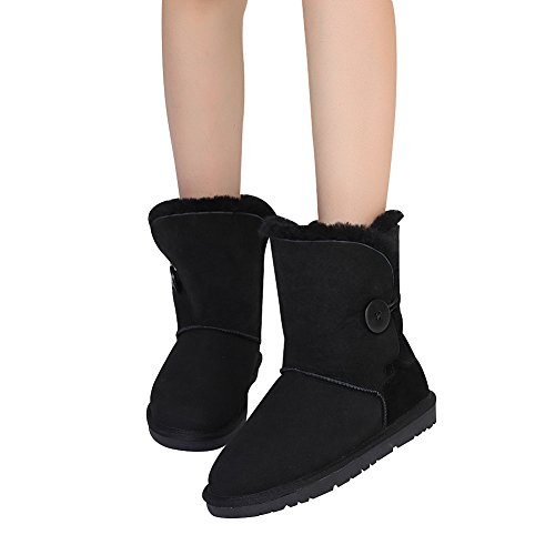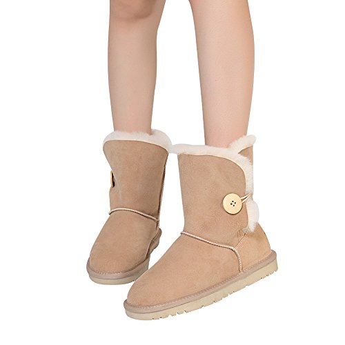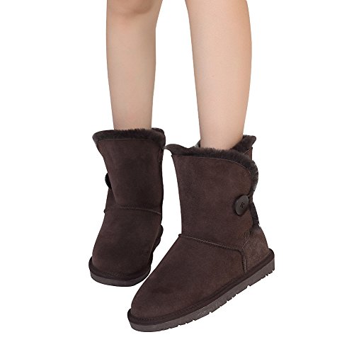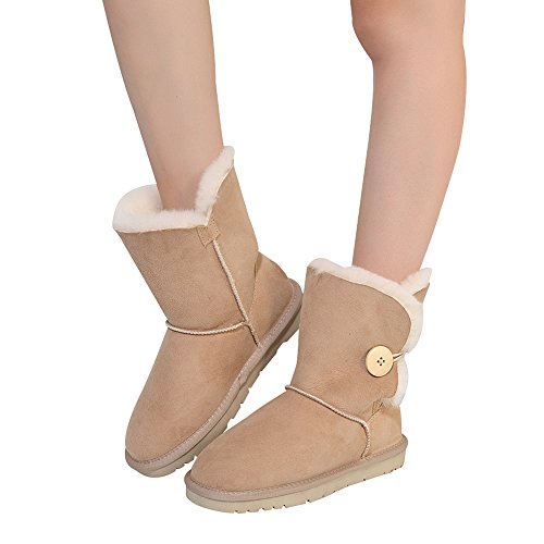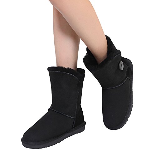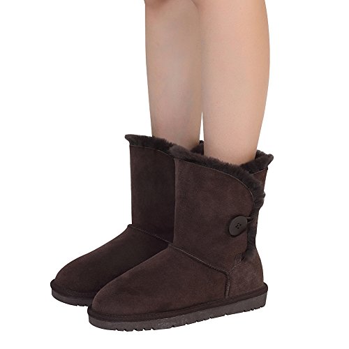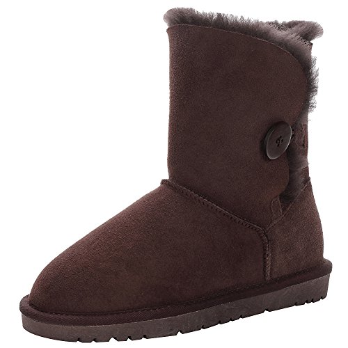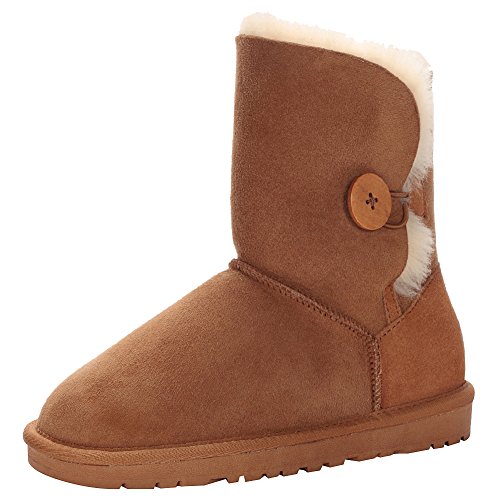 | (Jamron)/Women's/Boots/DIRECT FROM USA/Jamron Women Classy Sheepskin Mid-Calf Snow Boots Warm Shearling Wool Lined Winter Boots With Button |