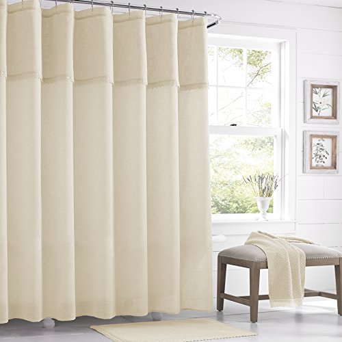 Five Queens Court Sonia Semi-Sheer Crochet Trim Shower Curtain, Shabby Chic, Ivory