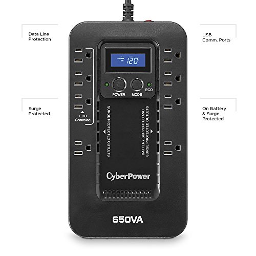 CyberPower EC650LCD Ecologic 650VA/390-Watts Energy Efficient Desktop LCD UPS