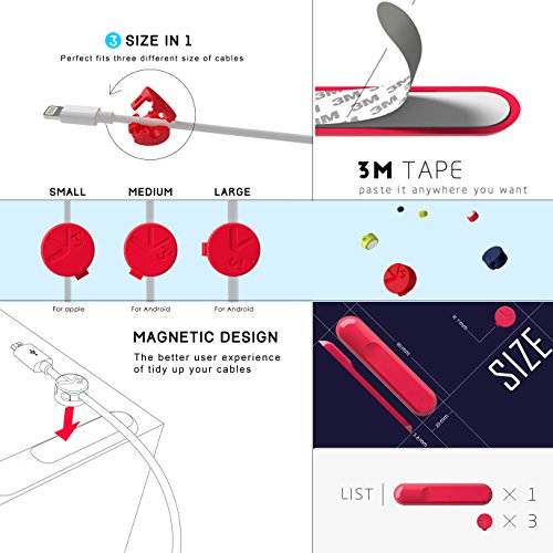 This Cable Organizer with Creative Design Support You Setting up a More Effective Solution for Cable Management.It Contains Two Parts,Magnet Base and Magnet Buckles.Peel Off the Magnet Base's Protective Film on the Back and Stick to Any Surface Such as Wall,Desktop,Bedside Table etc.Tie Your Cable with the Magnet Buckle(Remember Choose the Right Size),Then You Can Attach the Cable to the Base Firmly.It's Really Simple But Effective.