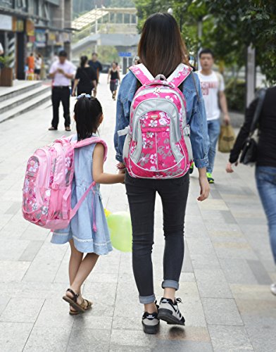 Tinksky Flowers Pattern Backpacks for Girls Elementary School Students Book Bag Pink