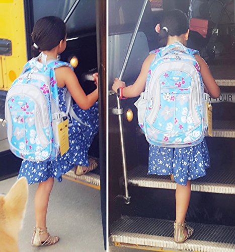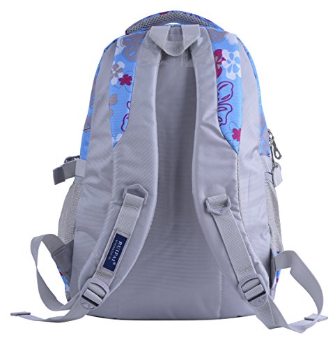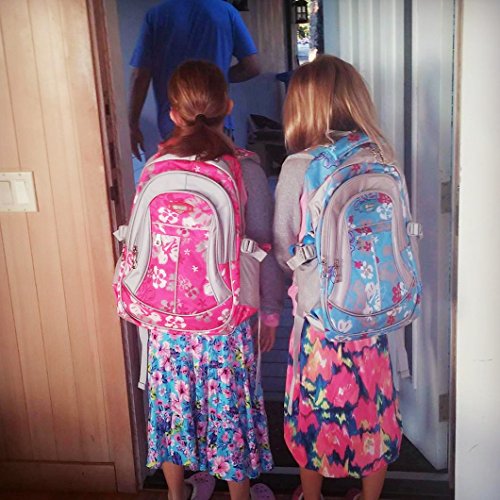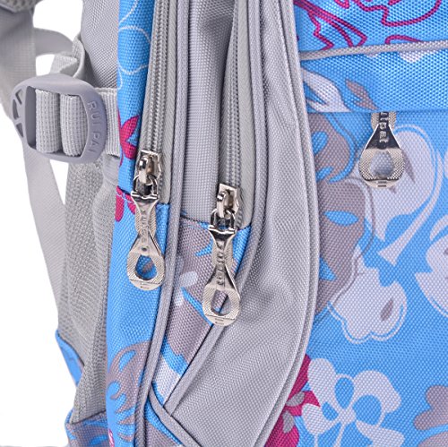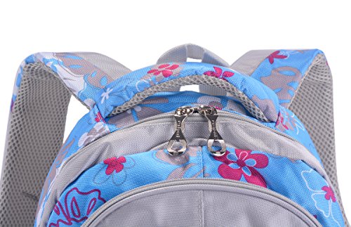 Coofit Flowers Pattern Backpacks for Girls Elementary School Students Book Bag Blue