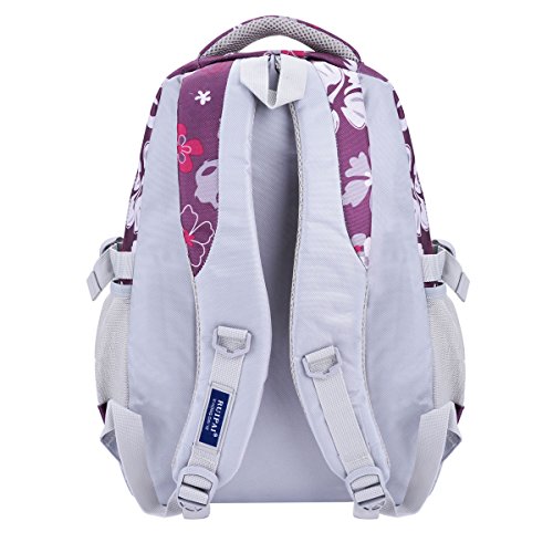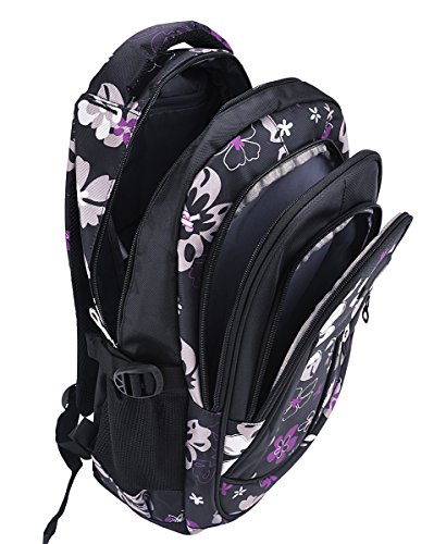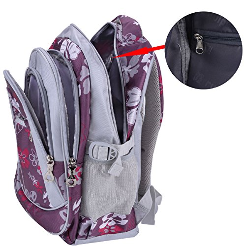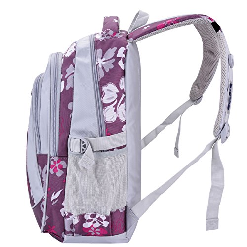 Tinksky Flowers Pattern Girls Backpacks Elementary School Student Bookbag Purple