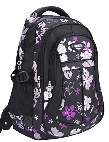 Tinksky Flowers Pattern Primary School Bookbag Girls Backpack Book Bags Black