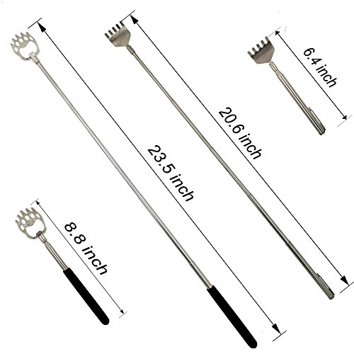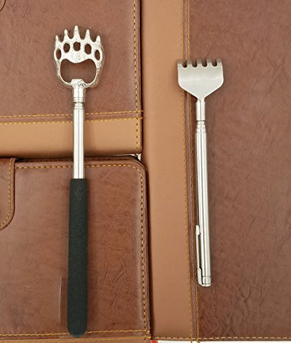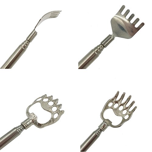 Studio : SACKORANGE Publisher : SACKORANGE Binding : Health and Beauty Product Description Product descriptionA: When you feel itching in some parts of your body but your hand can't reach, you can use this scratcher to help you. It is telescopic, can extend to nearly 23" to give you instant relief anywhere you need it, so convenient! When you don't need it, you can retract it down to 8.5 ". Easily fits into a pocket or purse. Product descriptionB: Stainless Steel Back Scratcher was scratching, massage, Relaxing tendon and activating blood features traditionally innovative portable massage products, is a good helper of life. Especially for the elderly, pregnant women Back Scratchere can shrink, stretch, easy to carry,good for home,office and tourism,It is made of high quality stainless steel. The structure is compact, beautiful and practical,Grasping the head through a highly polished Seiko, smooth, delicate, no angle, not to hurt the skin and clothing, make your life more Comfortable Package: 1 x Bear Claw Back Scratcher 1 x Stainless Steel Back Scratcher