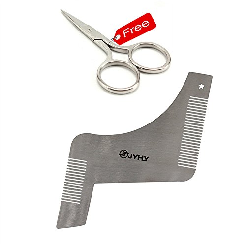 JYHY Beard Shaping Tool & Scissors Kit Mustache Grooming Symmetric Beards Shaper & Styling Template for Men Facial Hair Trimmer for Jaw Line Neck Goatee, New