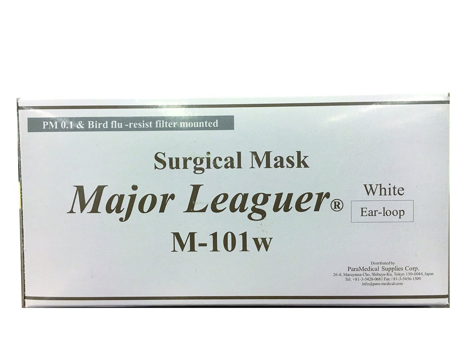 "Major Leager Surgical Mask M-101w White" is a high-performance filter that clears the high-grade liquid penetration withstand pressure of 120 mmHg (standard upper blood pressure level) of the US medical mask standard, and is more than 99% for both BFE and PFE. As measures against influenza,