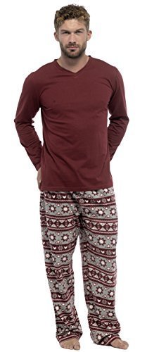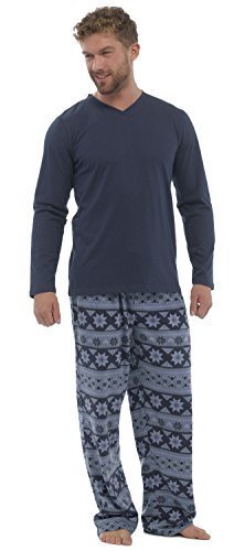 Binding : Apparel Product Description Men's pyjama set with fairisle design fleece bottoms and long sleeve jersey top. Elasticated waist bottoms with front ties. Top is 60% Cotton 40% Polyester. Bottoms are 100% Polyester. To fit approx : Medium = Chest upto 41" / 104cm, Waist upto 31.5" / 80cm *** Large = Chest 41-43" / 105-109cm, Waist 32-34" / 81-86cm *** X-Large = Chest 43-45" / 110-115cm, Waist 34-36" / 87-92cm *** XX-Large = Chest 46-48" / 116-121cm, Waist 37-39" / 93-98cm 0