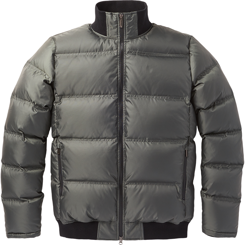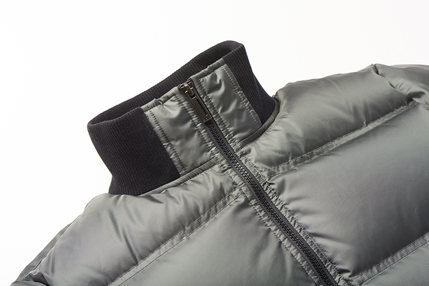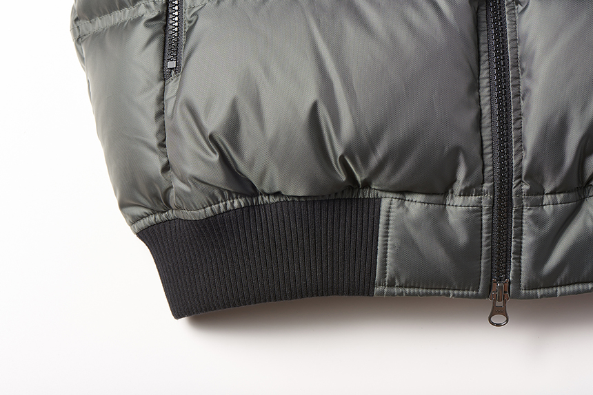 -볼드한 지퍼, 에리와 밑단에 적용된 두툼한 RIB 조직이 특징인 기본형 다운 자켓