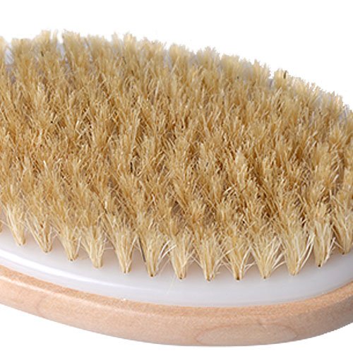 -. Feature : Description: Innovative angled bath brush with natural bristles / Function: Effectively cleanses and thoroughly exfoliates / Dimensions: 9.5 x 2.75 x 1.5" / Made of: Wooden finish wide angled with hanging loops / Fit for all: Soft and gentle on the skin for men, women, ladies, teens