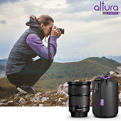 Includes: Altura Photo Medium Neoprene Pouch Bag for DSLR Camera Lens + MagicFiber Microfiber Lens Cleaning Cloth.