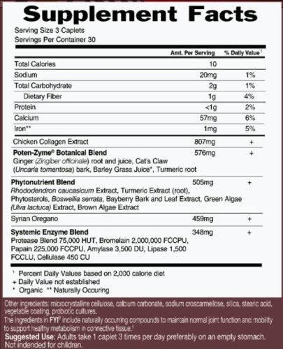 JOINT SUPPORT: FYI joint complex contains chicken collagen type II, systemic enzymes and herbs chosen for their ability to support joint health