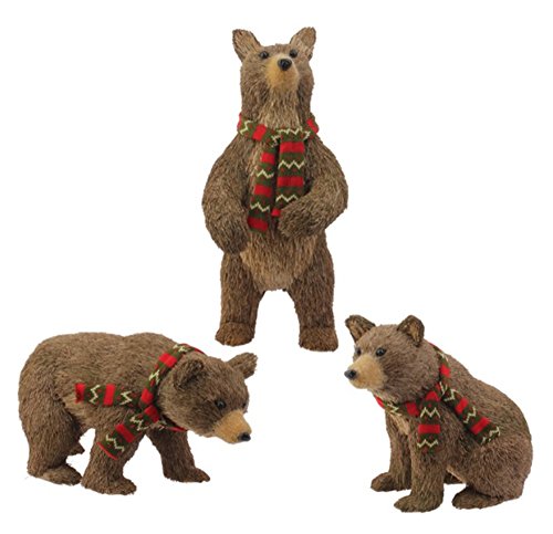 Raz Holiday Christmas 18" Brown Bear with Scarf Tabletop Figurines Set of 3
