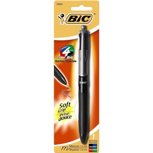 -. Title : Bic 4-color Grip Ballpoint Pen - Medium Pen Point Type - 1 Mm Pen Point Size - Black, Blue, Red, Green Ink - Black Barrel - 1 Pack