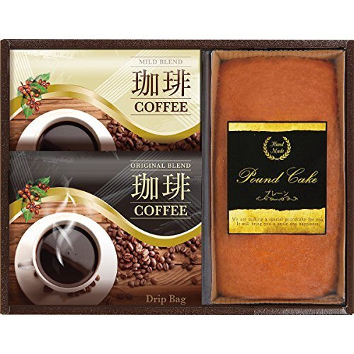 原材料:ドリップコーヒーマイルドブレンド(7g×2袋)・ドリップコーヒオリジナルブレンド(7g×2袋)・パウンドケーキ(プレーン)×各1