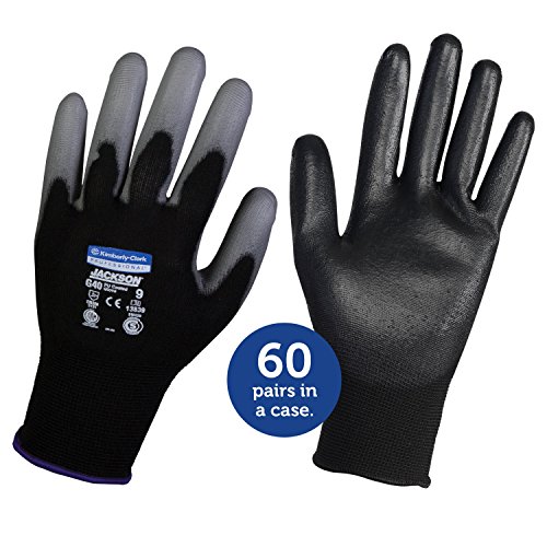 JACKSON SAFETY 13839 G40 Polyurethane Coated Gloves, High Dexterity, black, 15.000" Height, 12.000" Wide, 2.500" Length, Polyurethane, Large/ 9 (Pack of 60)