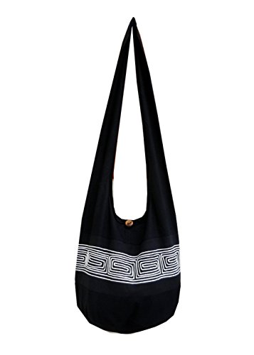Product Description a classic example of cross-body hobo yam with the comfort of 100% cotton and the cultural charm of ethnic tribal patterns in an embroidered banner. Zippered bag with inside zippered pocket and reinforced base. 0