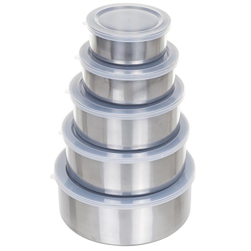 Chef Buddy 5 Piece Stainless Steel Bowl Set with Lids, Silver