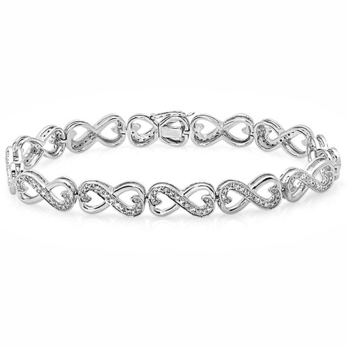 -. Title : 0.30 Carat (ctw) Sterling Silver Round White Diamond Ladies Infinity Heart Tennis Link Bracelet 1/3 CT