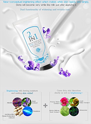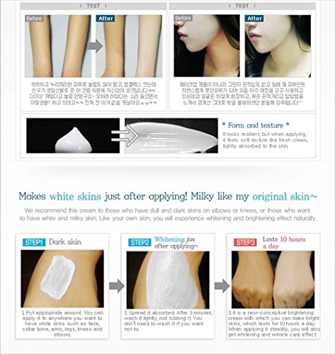 New Conceptual whitening effect different from make-up products. It is not a make-up product, but a new-conceptual brightening cream, has no sticky feeling and gives soft texture like fresh cream, it makes skin white just after applying and it will last for maximum of 10 hours just applying once.