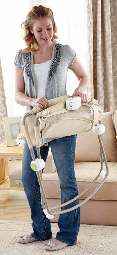 -. Feature : Easy to clean / Wonderful gender neutral design / Features gentle rocking action with a push from mom / Luxurious, soft fabrics to cradle baby / Lightweight and easy to use