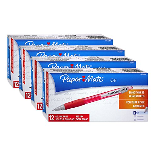 -. Title : Paper Mate Retractable Rollerball Gel Ink Pen, 0.5mm, Fine Point, Red Ink, Pack of 48