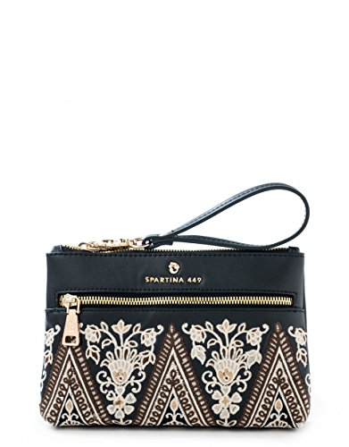 Product Description This little wristlet packs super-pattern power into its petite size! Top-grain leather is embroidered with our Henna design from front (with a front zip pocket) to back. Unzip and you'll find 4 interior card slots and another zip pocket. Perfect for zipping down to the lunch-hour food truck, holiday shopping and date night dashing. PATTERN 0